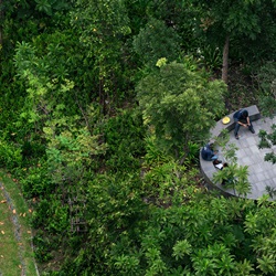 Variety of evergreen, flowering and fruit baring trees, and shrubs species, including tropical forest trees, tropical forest shrubs, and water plants, as well as the ‘eco pond,’ help enhancing the forest as habitat for butterflies, dragon flies, bird, and other wild animal to maintain healthy biodiversity at large.