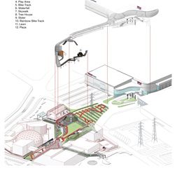 แนวคิดของสวนสาธารณะกลางศูนย์การค้าเมกา บางนาแห่งนี้เริ่มต้นจากกลวีธีระดมความคิดของกลุ่มผู้ใช้งาน (Group Brainstorm) นำมาซึ่งการสร้างพื้นที่หลากหลายรูปแบบที่ตอบโจทย์ความต้องการ และเข้าถึงได้ง่ายด้วยทางลาดยาวต่อเนื่องสำหรับทุกกลุ่มคน (Universal Design) นอกจากนี้ยังมีการคำนึงถึงการใช้งานพื้นที่กิจกรรมต่างๆ ภายใต้ภาวะน่าสบาย (Comfort Zone) ที่จะทำให้ผู้คนได้เพลิดเพลินกับพื้นที่กลางแจ้งมากขึ้น เด็กๆได้ปลดปล่อยจินตนาการและสนุกสนานภายใต้การดูแลของผู้ปกครองที่สามารถเพลิดเพลินไปกับสิ่งอำนวยความสะดวกต่างๆ ไปพร้อมกันได้