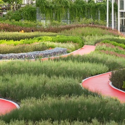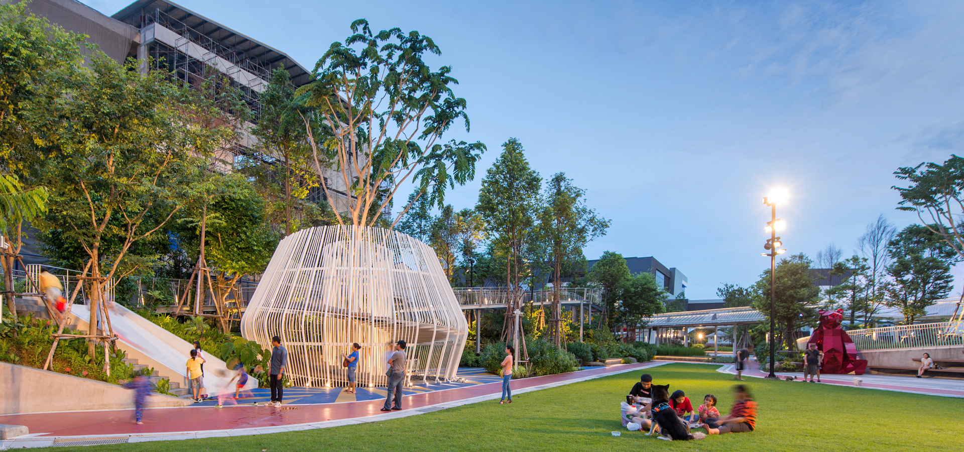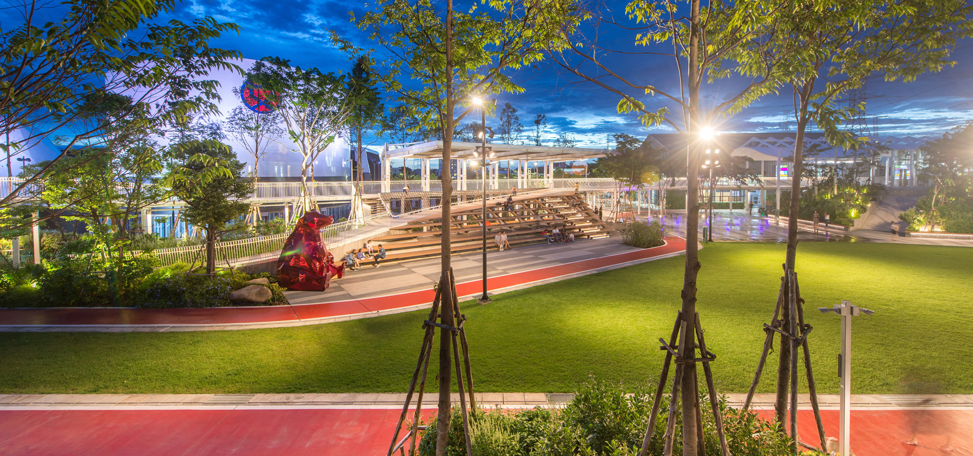 Mega Bangna shopping mall. It is a new connection from the shopping mall to the future mixed-use development where retail expansion, new tourist attractions and residential areas will be developed. The park becomes a major spine that strengthens the pedestrian circulation system for the overall development. Landscape design for Mega Park provides a place where families could spend their time together. The park design aims to create the safe environment and enjoyable experience for all users through a series of carefully planned and designed landscape features and diverse plantings. A deliberately thought-out plan and design originating from its users.