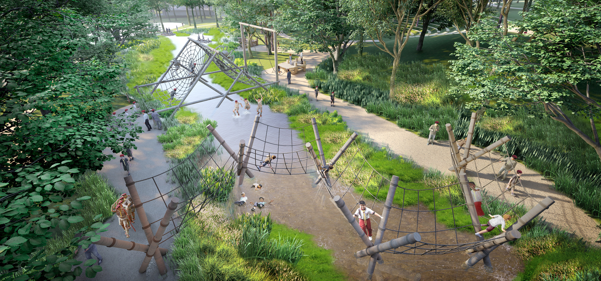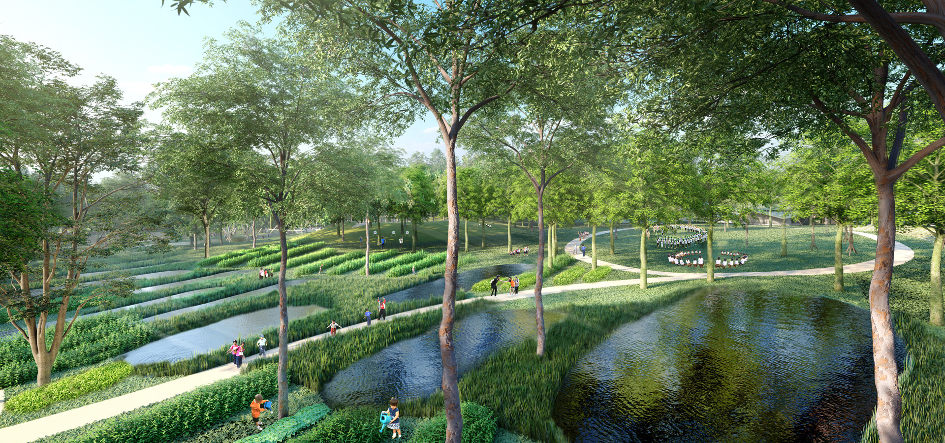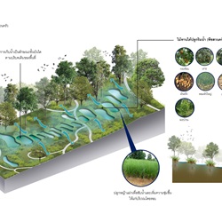 “Creating learning area for juvenile were going to hold new activities together with restoring natural environment of the area to be lusher. No matter what land-surface water management, water ponding and planting such big trees out their board area. This project has proposed spaces for alternative activities. At the same time, the ecological system in the area has been restored. Water management was combined in the design, also local trees were vastly added into many areas.”
