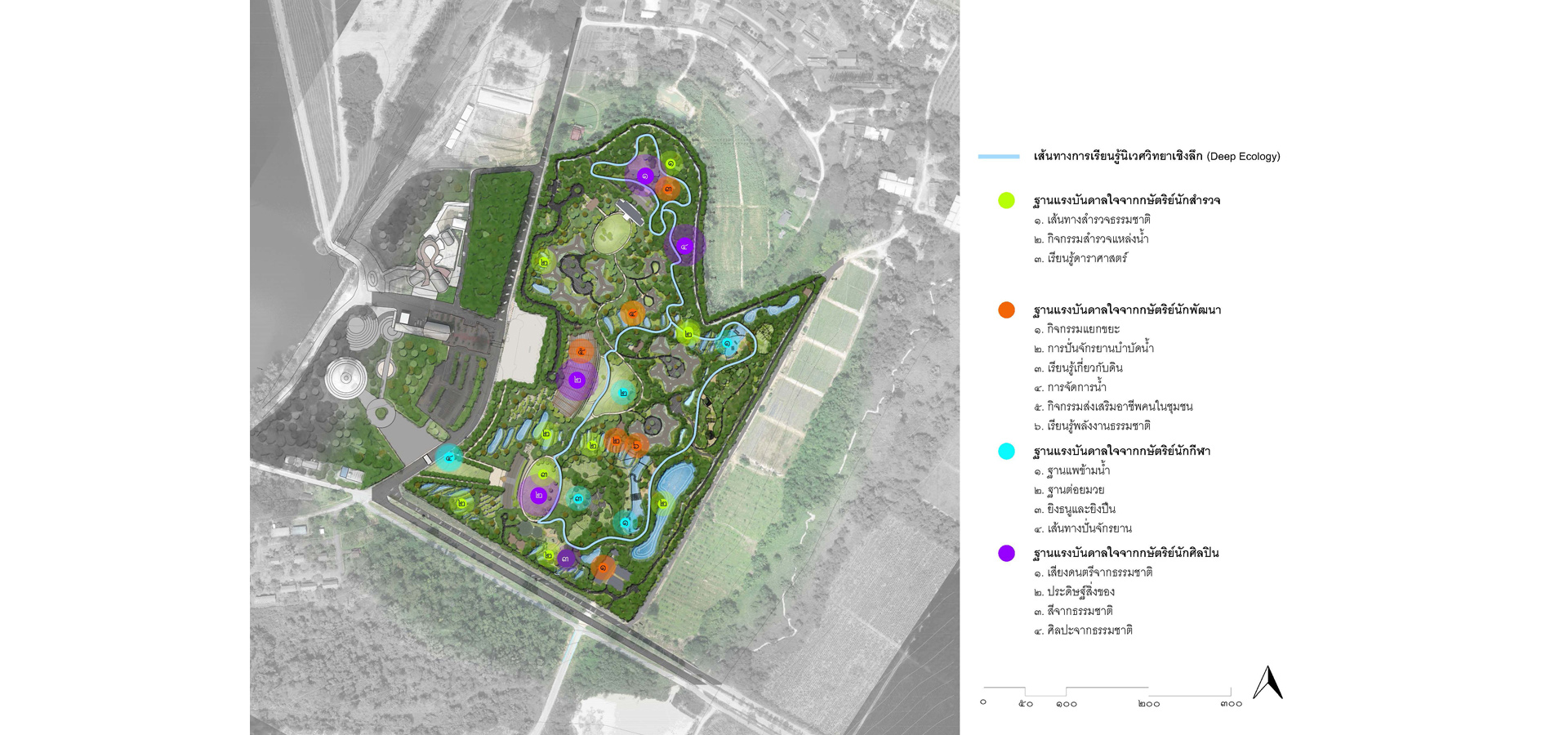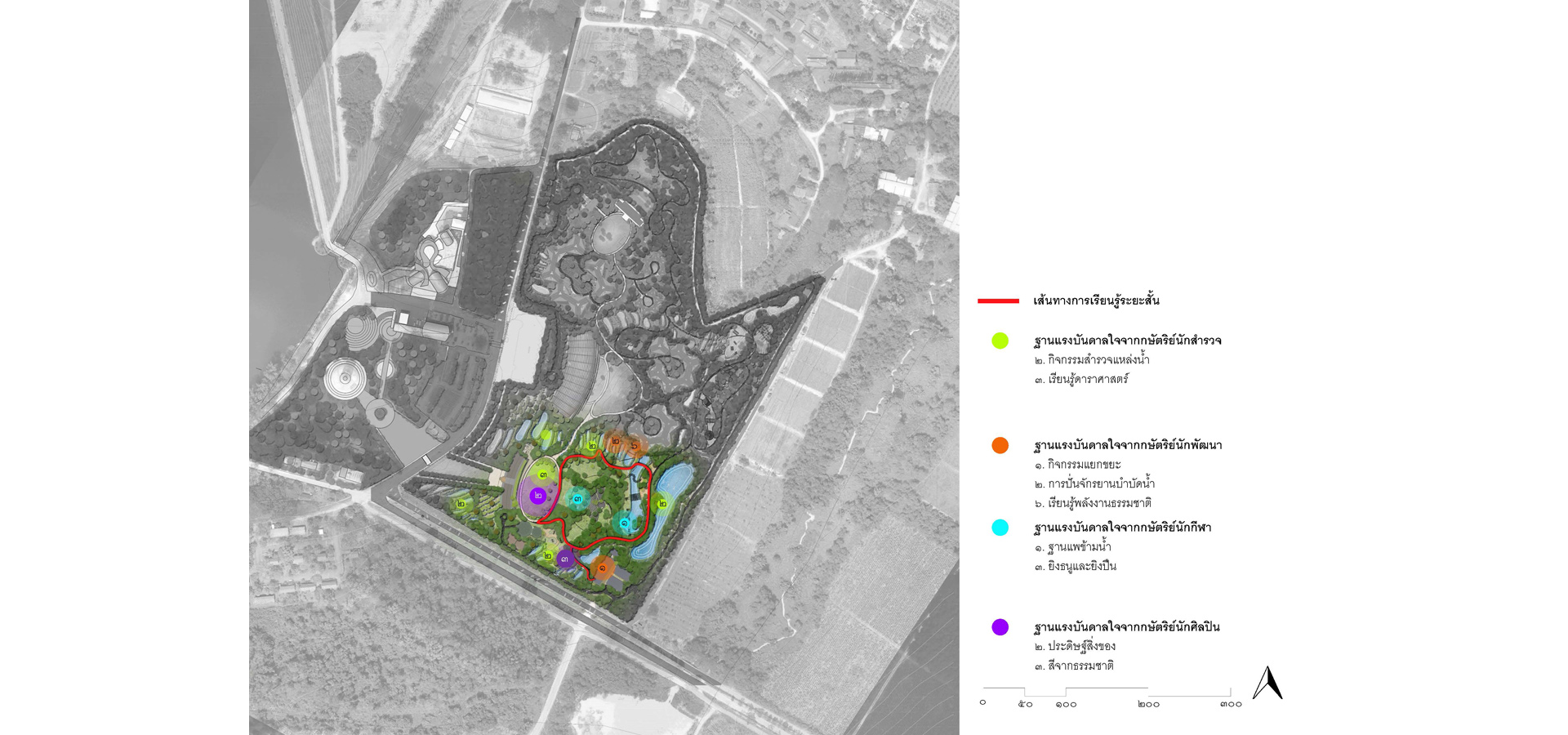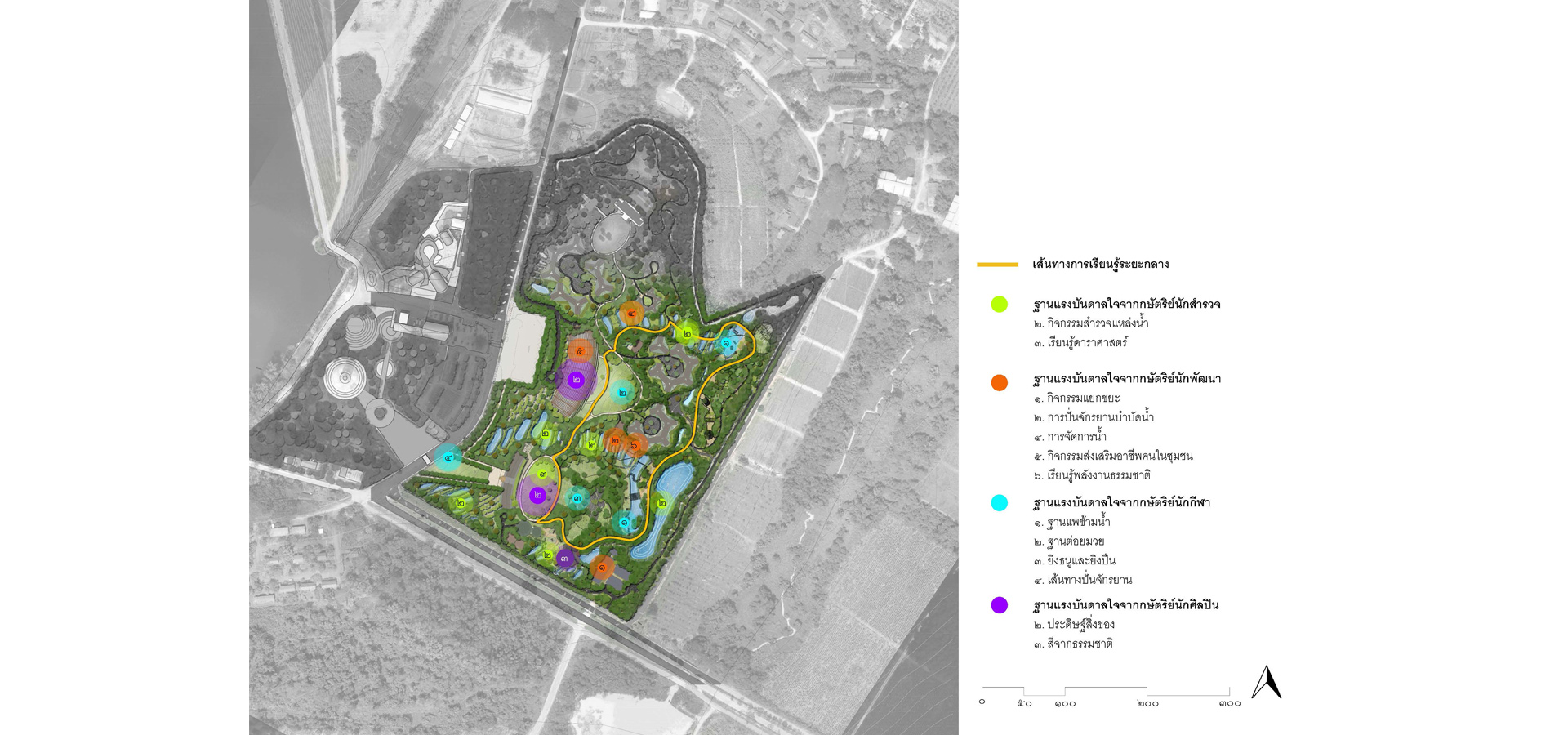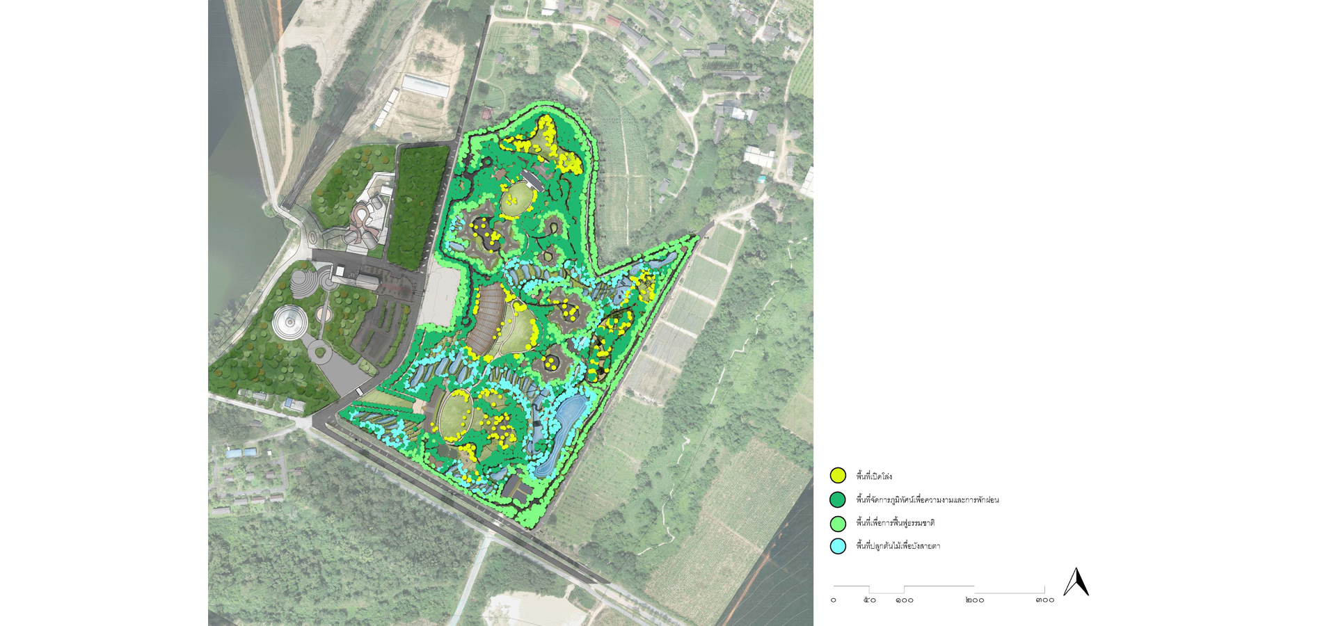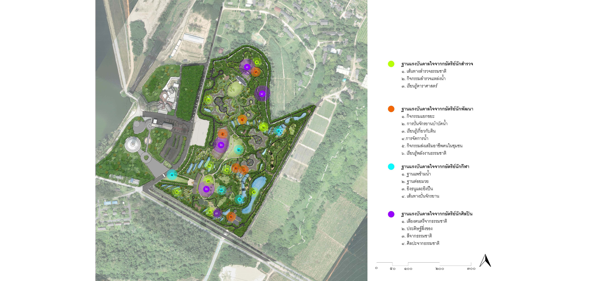 1.The master plan was designed in accordance with the natural context in terms of physical, components, and identity for developing a human resource. Due to the size of the project site, the sequence of spaces was included in this master plan to make them easier to recognize.