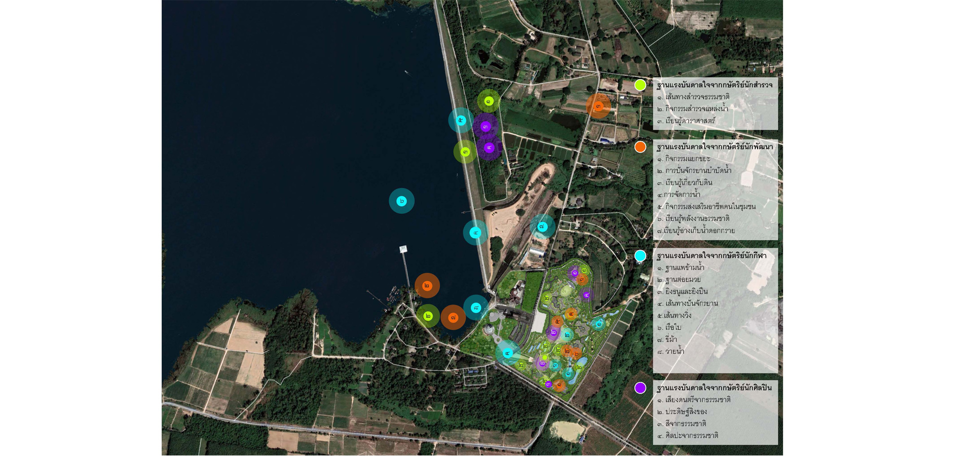 2.The adventure learning station was created for adaptable uses for various ages of scouts based on an economic efficiency concept. Each station got inspired by King Bhumibol Adulyadej divided into 5 categories: explorer, Adventurer, developer, athlete, and artist