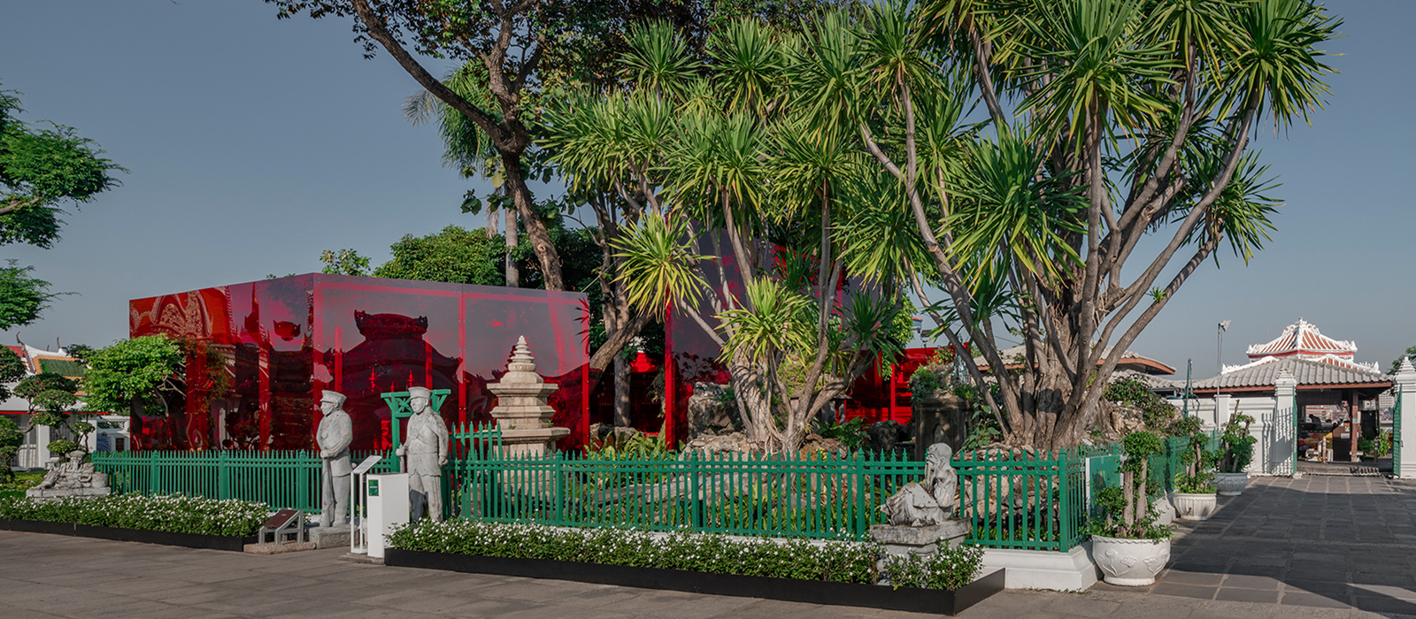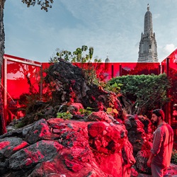 AS PART OF BANGKOK ART BIENNALE, THE WORK “ACROSS THE UNIVERSE AND BEYOND” IS A SITE-SPECIFIC WORK AT KHAO MO, WAT ARUN. THE RESEARCH ON TRAIBHUMI, ALLOWS SANITAS TO CREATE A CONTEMPORARY VERSION OF THE SACRED ENCLOSURE.