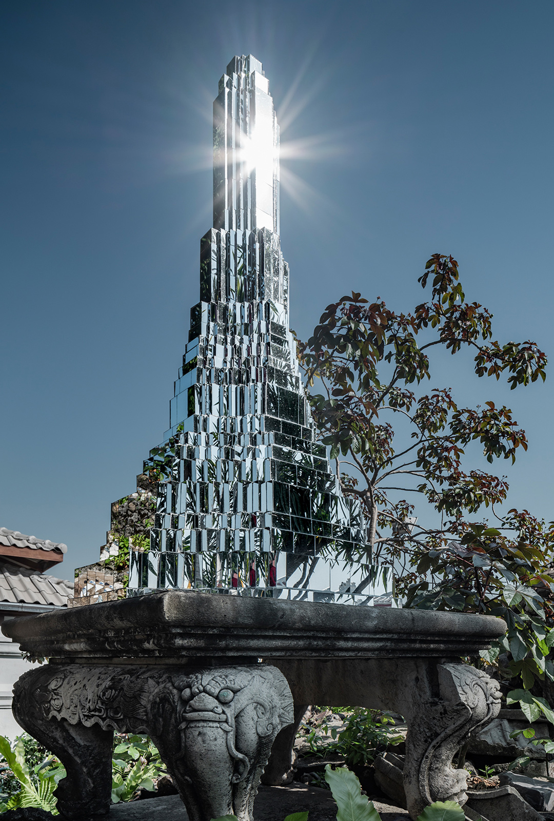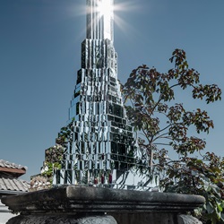 2. The World Outside : หุ่นจำลองพระปรางค์ปิดผิวด้วยกระจกแก้วตัวแทนของความเชื่อที่ถูกกลบทับด้วยภาพสะท้อนจากบริบทภายนอกจนบางครั้งมองไม่เห็นว่ามีอะไรอยู่