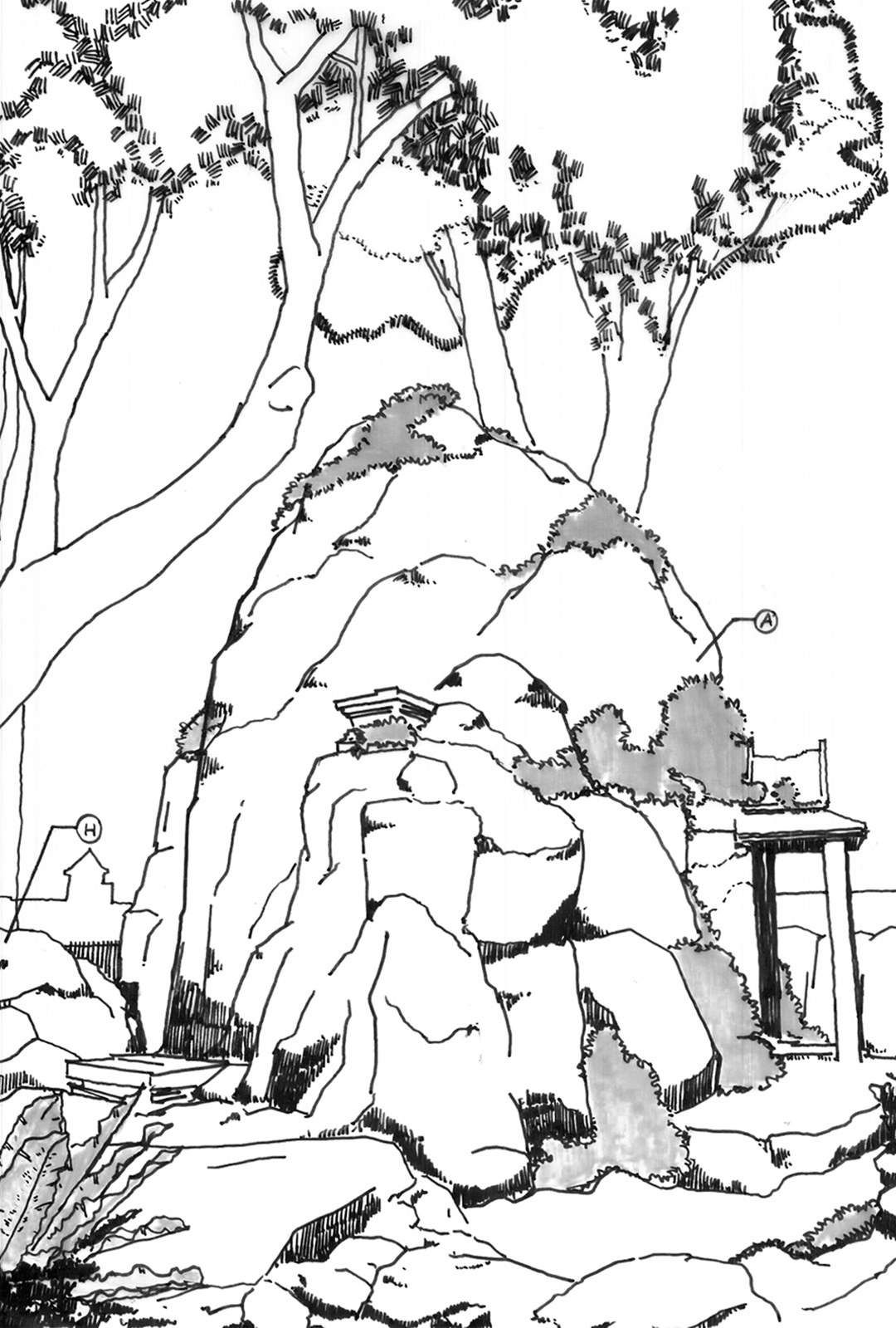 KHAO MO IS A REPLICA MOUNTAIN, AN IMITATION OF NATURE CREATED IN THE LIVING ENVIRONMENT OF HUMANS. THE FIRST OF ITS KIND CAME INTO EXISTENCE IN THAILAND IN THE AYUTTHAYA PERIOD. THE KHAO MO AT WAT ARUN (TEMPLE OF THE DAWN) WAS ORIGINALLY BUILT IN THE REIGN OF KING RAMA II AT THE GRAND PALACE AND WAS RELOCATED TO THE FRONT OF THE TEMPLE TO ITS NORTH FOLLOWING THE COMMAND OF KING RAMA III. WITH REFERENCE TO THE BUDDHIST COSMOLOGY, KHAO MO REPRESENTS THE HIMMAPHAN, THE FOREST WHERE ALL LIVING CREATURES REPEAT THEIR CYCLE OF BIRTH AND DEATH, AS TOLD IN THE STORY OF TRIBHUMI.