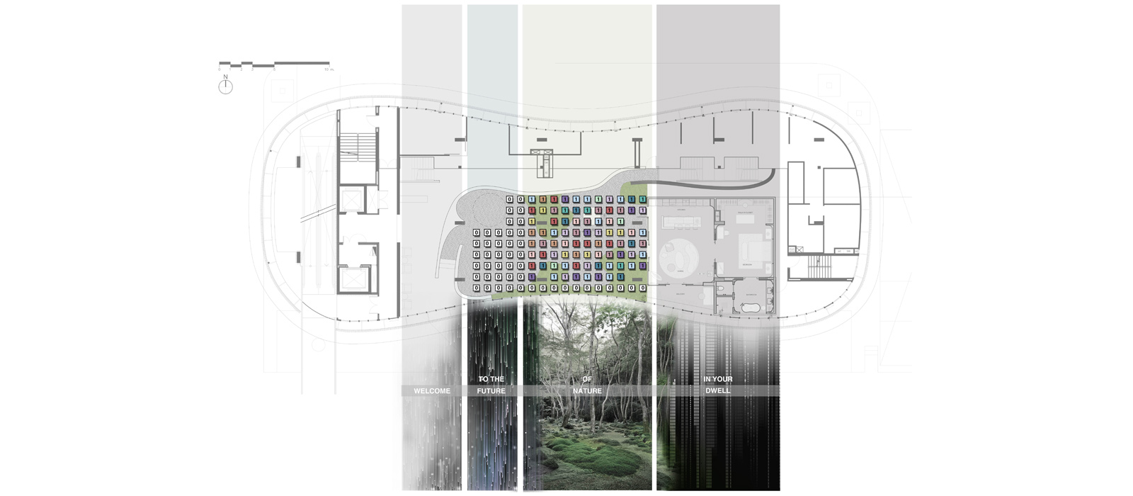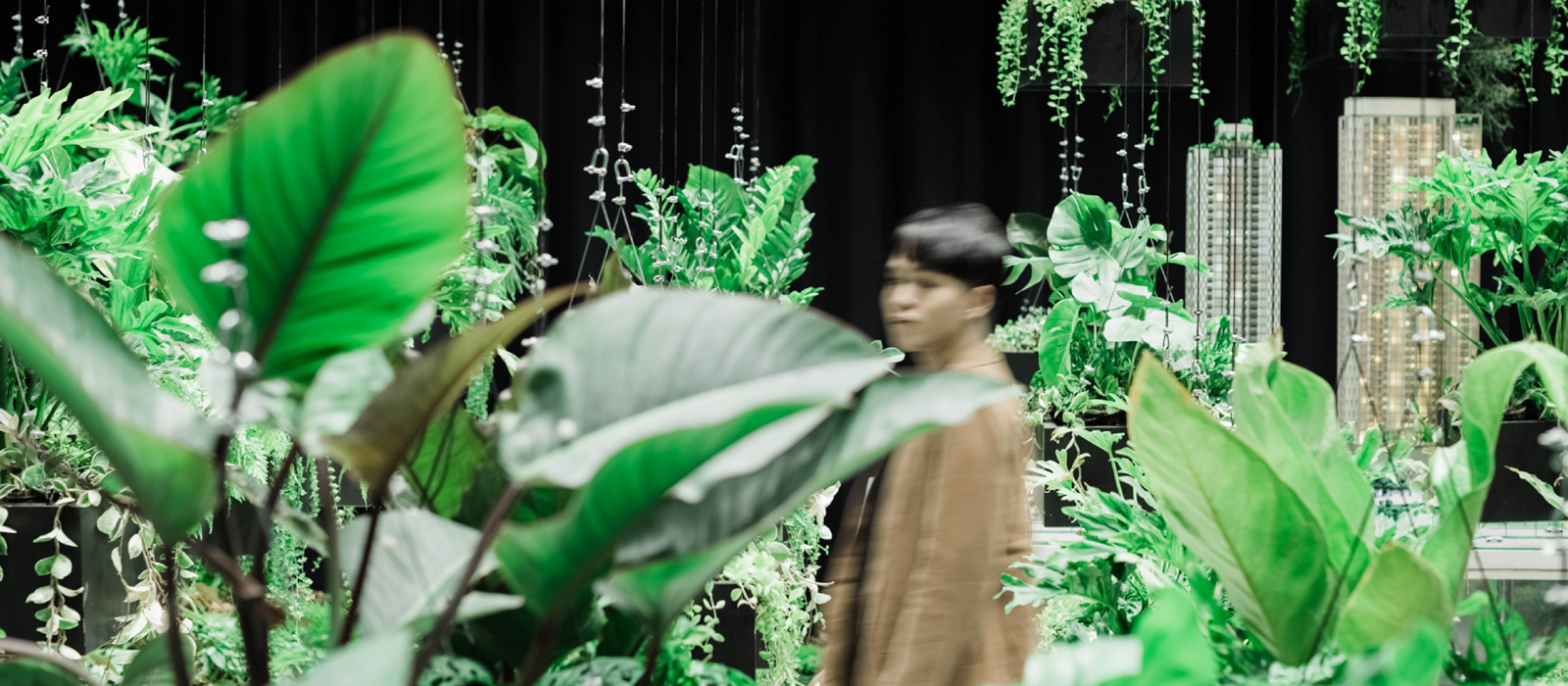 “This project establishes an inspiration for creating installa-tion art. The utilization of technologies and innovations allows the plant materials to move, hence creating four themes of the space.”