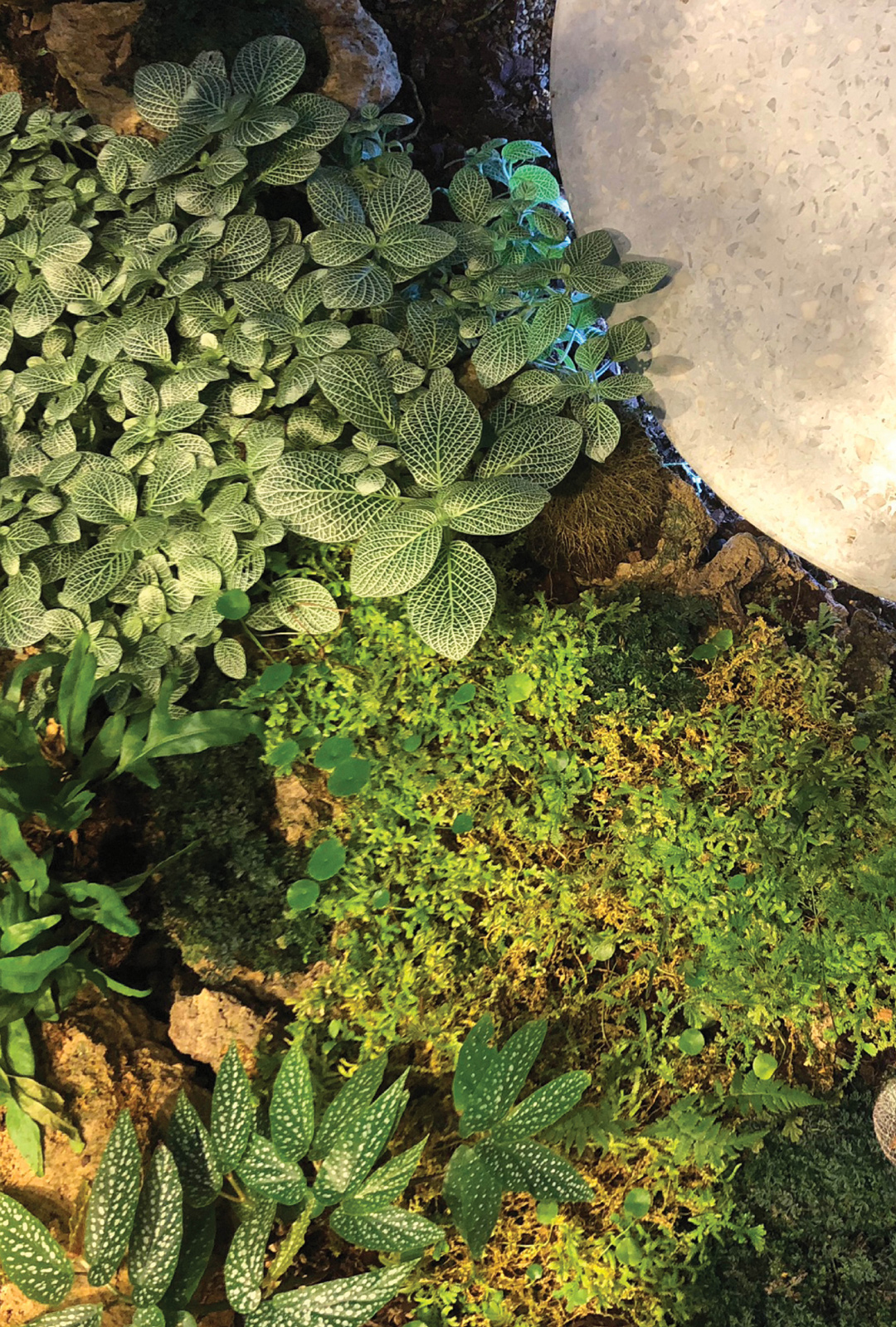 (4.1) Moss Zone นำเสนอความอุดมสมบูรณ์ของธรรมชาติที่เริ่มต้นจากพื้นดิน ก่อนขึ้นสู่หมู่แมกไม้ด้านบนในส่วนที่ 4.2 โดยพื้นที่บริเวณนี้ได้ใช้เทคนิคพิเศษในการปลูกมอสตามทางเดิน