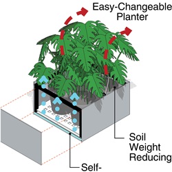 (2) พื้นที่อยู่ภายในอาคารทั้งหมด เป็นพื้นที่ปิด และใช้เครื่องปรับอากาศตลอดเวลาใช้งาน ทำให้อากาศมีความชื้นต่ำและไม่สามารถรดน้ำต้นไม้ขณะเปิดเครื่องปรับอากาศได้ การออกแบบจึงคำนึงถึงเทคนิคการให้น้ำพืชพรรณการเลือกใช้พืชพรรณเป็นพิเศษ