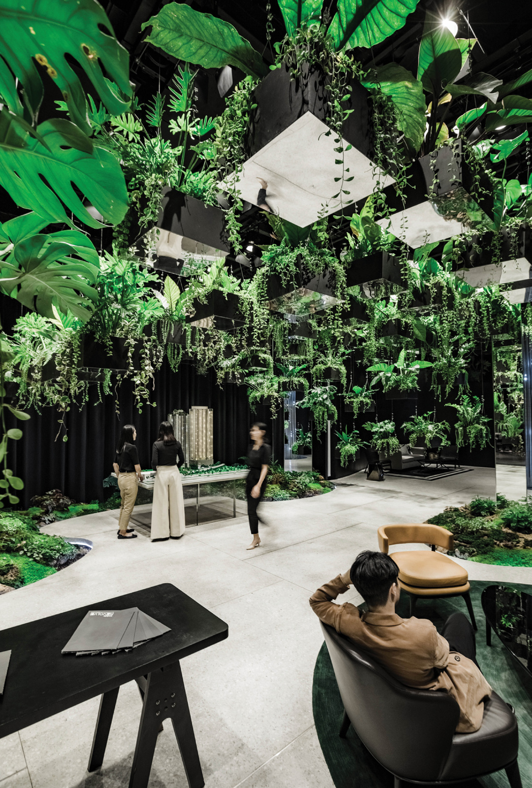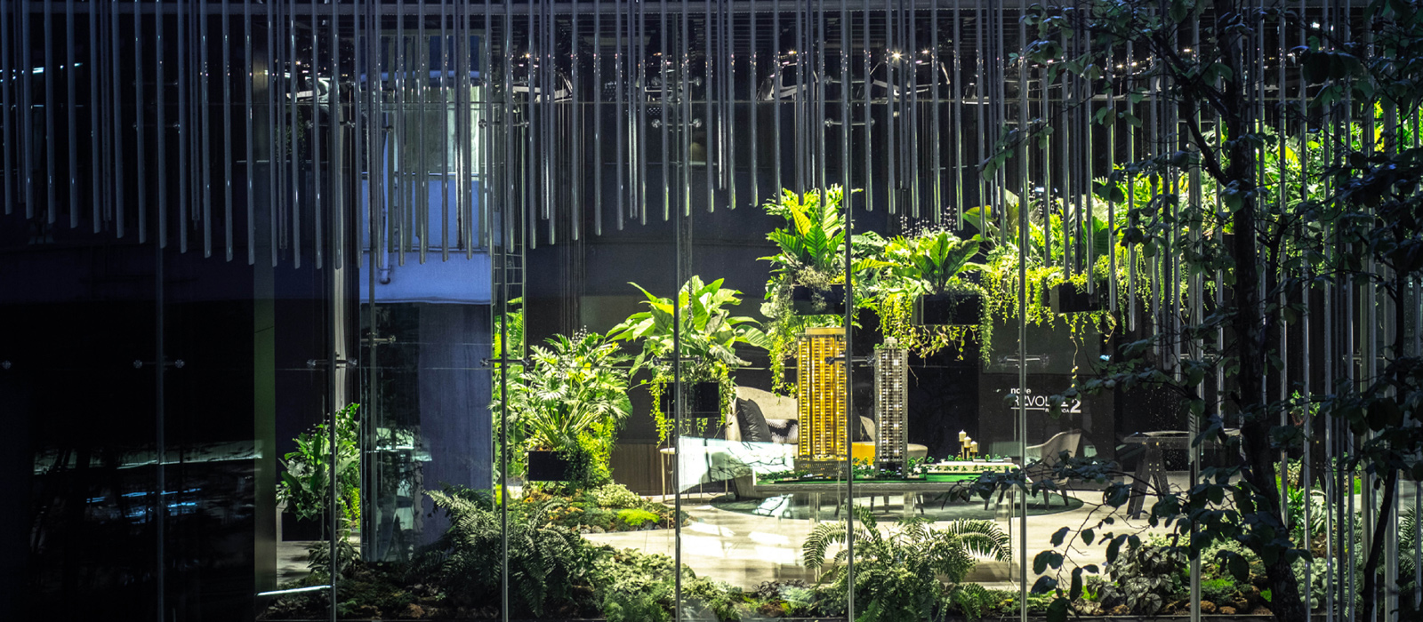 Noble Sale Gallery is an interior Scape design which presents unique sale gallery project type by combined between Futuristic and the great nature in term of movable exhibition. This project successfully communicates with people through planting, space, movable planter, Installation art and establishes new experience of condominium sale gallery for people to interact with. Create method for plant to survive in enclosed space and lightless area.
