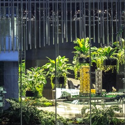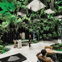 (1) พื้นที่มีขนาดเล็ก จึงออกแบบให้ Interior scape มีหลายระดับ (Layers) ทั้งระดับทางเดิน ระดับสายตา ด้านข้างและด้านบนที่สามารถเคลื่อนไหวขึ้นลงได้ สะท้อนแนวคิดความทันสมัย (Futuristic) ได้ทั้ง 360 องศา ใช้การผสมผสานระหว่างเทคโนโลยี Kinetic ร่วมกับการปลูกพืชโดยคำนึงข้อจำกัดด้านการรองรับน้ำหนักและการดูแลรักษา