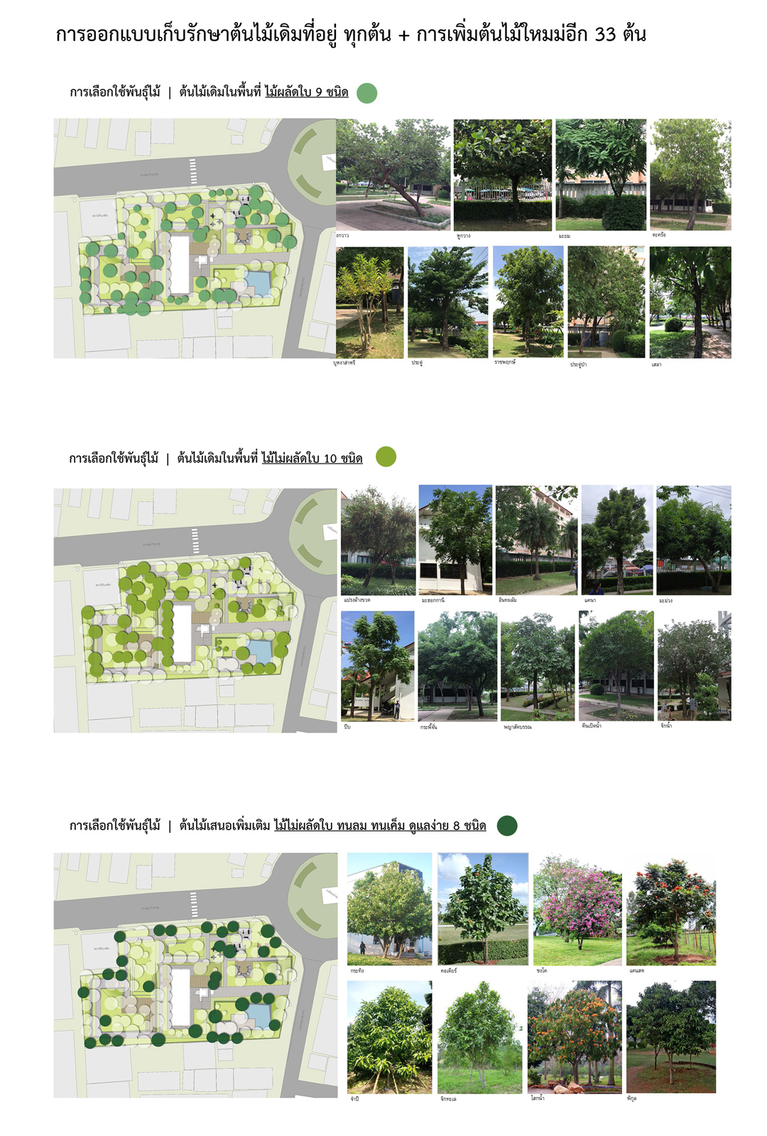 6.การออกแบบที่เก็บต้นไม้ในพื้นที่เดิมไว้ทุกต้น รวมทั้งปลูกเพิ่มเติม เพื่อเพิ่มสีเขียว เพิ่มปอดให้กับชาวชุมชนท่าฉลอม