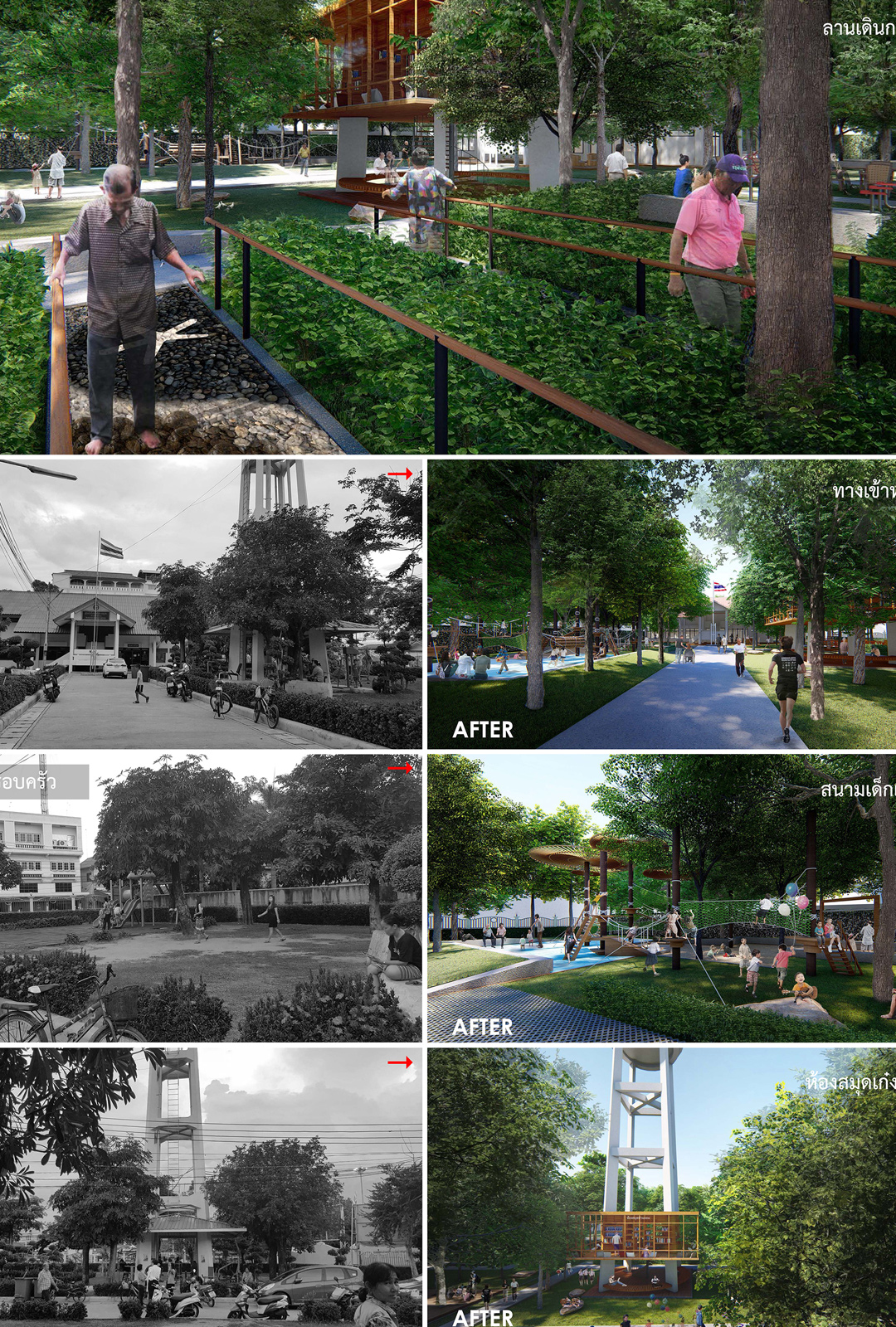 3.การออกแบบการผนวกพื้นที่ราชการคือ สถานีอนามัย กับพื้นที่สวนสาธารณะ เกิดการใช้งานที่บูรณาการ
