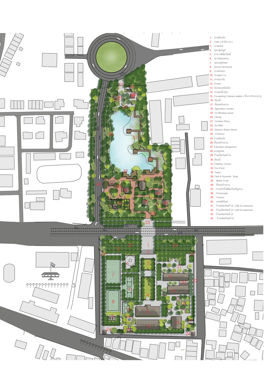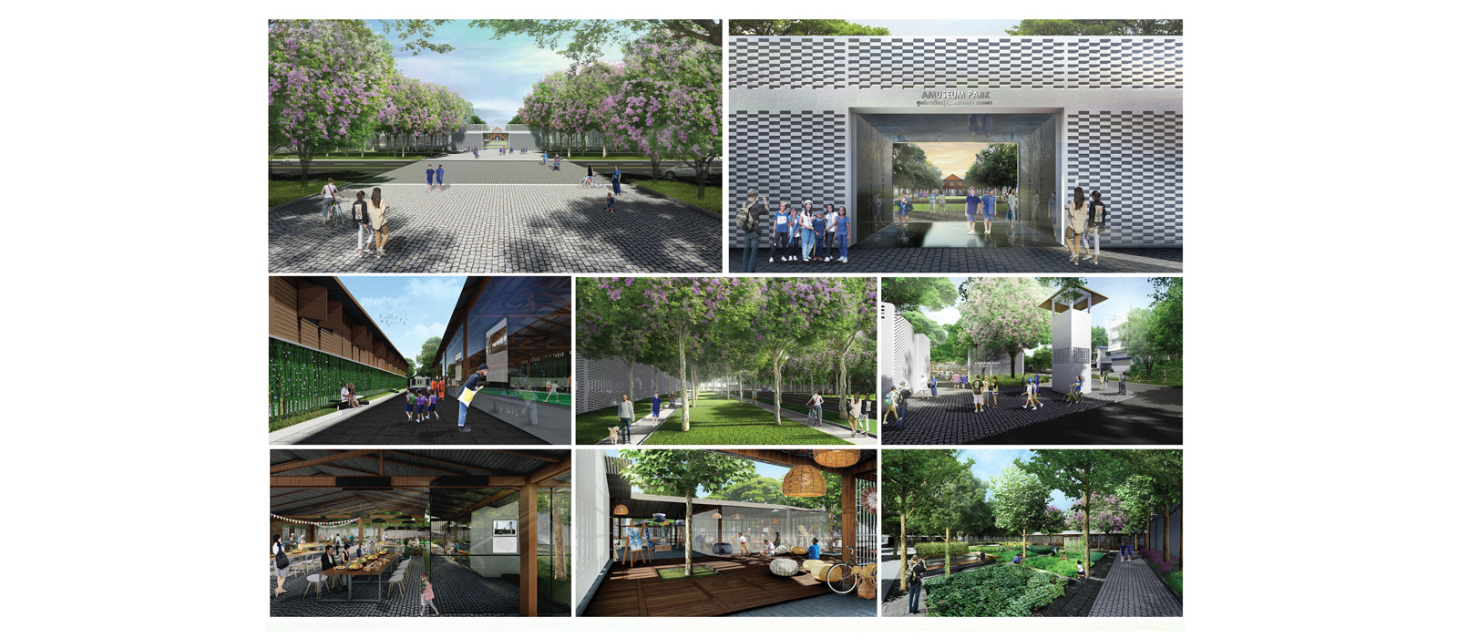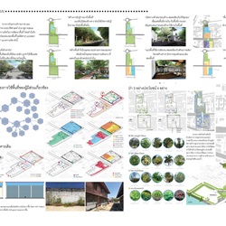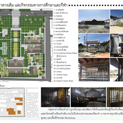 9.เป็นการออกแบบกิจกรรม ที่ซ้อนทับกันอย่างบูรณาการ คือ เส้นทางเรียนรู้ พิพิธภัณฑ์ , เส้นทางศูนย์ ฝึกอาชีพ creativities training zone , พื้นที่ออกกำลังกาย , พื้นที่ทางเศรษฐกิจ ร้านค้า, พื้นที่พักผ่อน