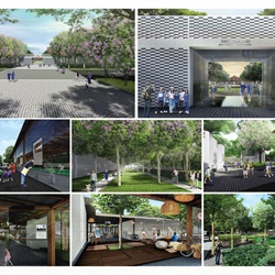 2.Sense of arrival: Since the shape of the project area is rather narrow with only 114 meters in width, the design must attract users and convey sense of arrival to them by using the botanical design to switch the atmosphere and forming the area of large grove as project name signage.
