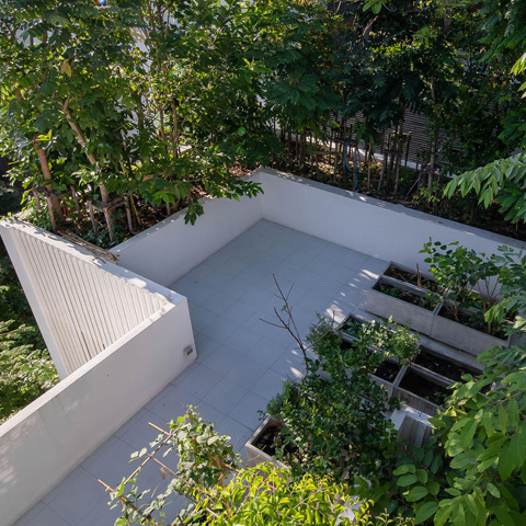 บนชั้นสามซึ่งเป็นชั้นดาดฟ้า มีภาชนะปลูกความสูงหนึ่งเมตรล้อมรอบพื้นที่ครึ่งหนึ่ง นอกจากจะใช้ปลูกต้นไม้ แล้วยังเป็นราวกันตกด้วย พื้นที่ว่างที่เหลือ ใช้ทำกิจกรรมหลากหลายไม่ว่าจะเป็นการตากผ้า กินอาหาร และยังปลูกพืชผักสวนครัวได้ด้วย