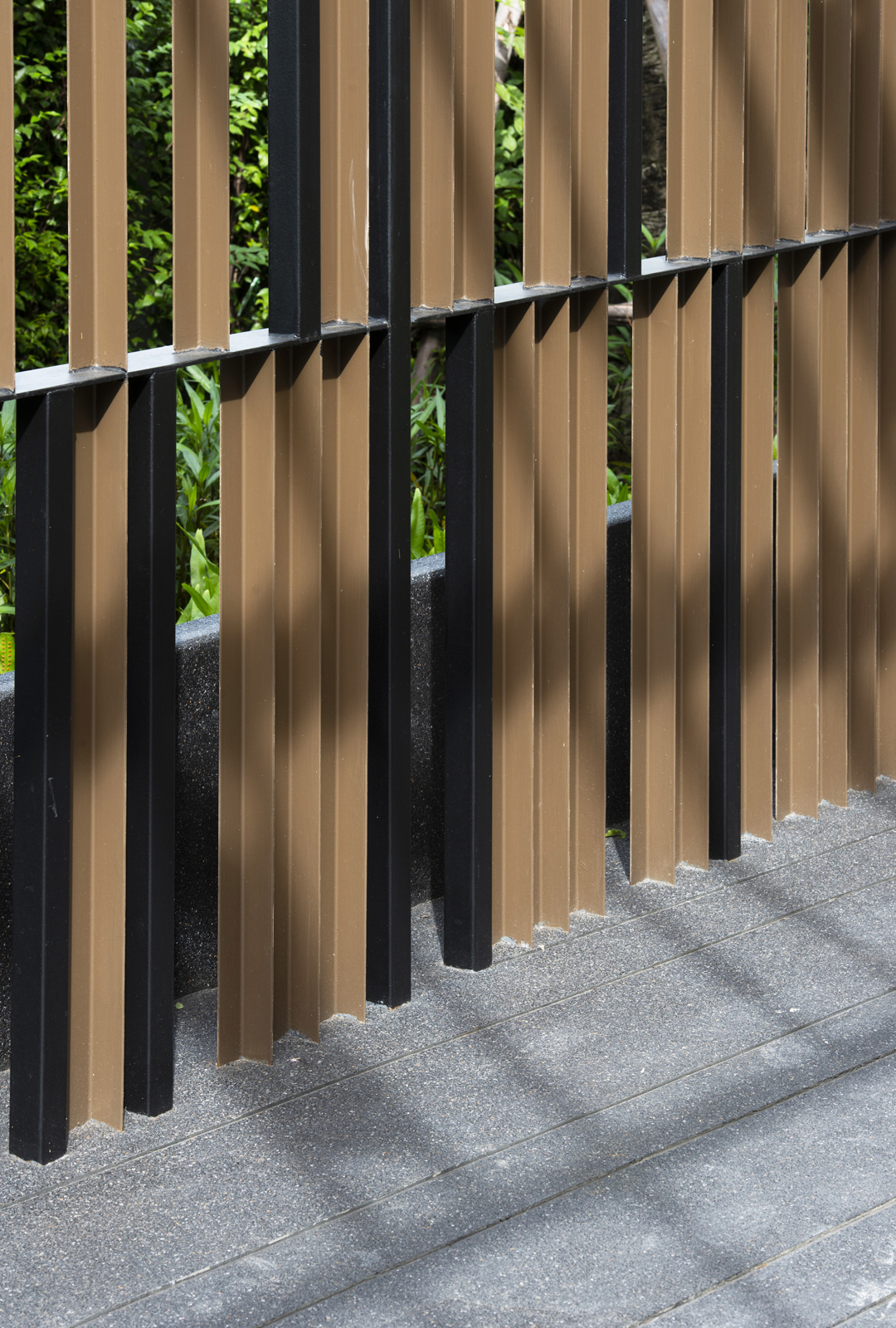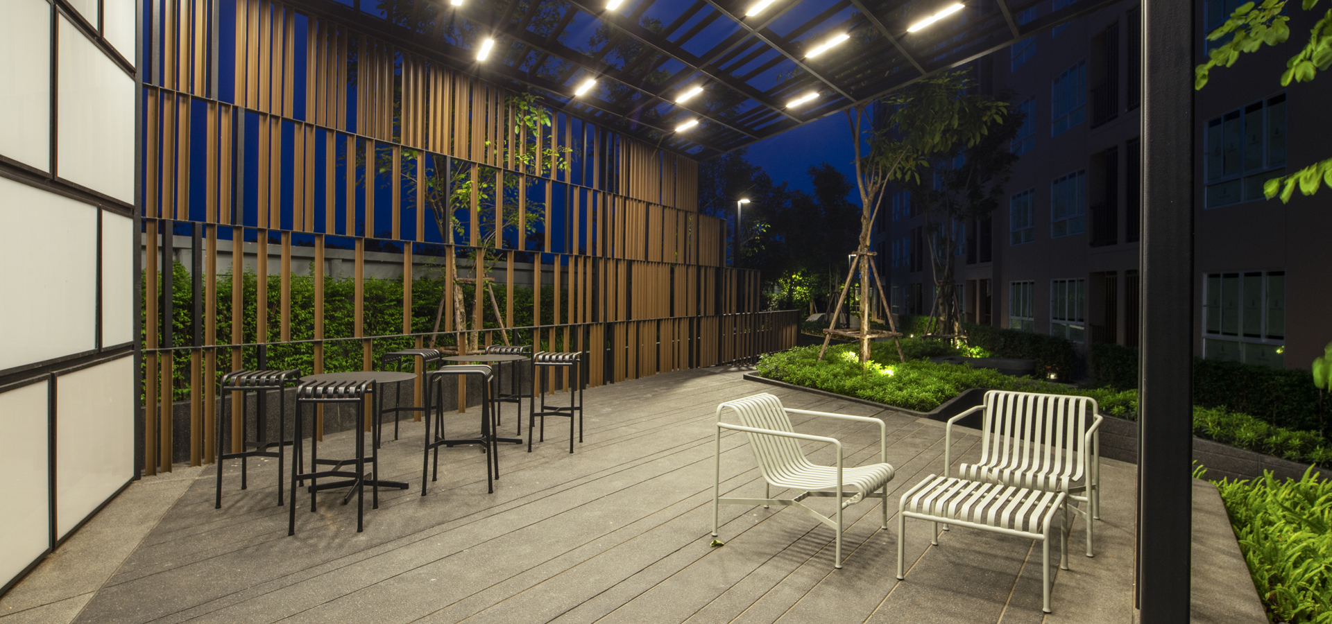 นอกจากนี้ การออกแบบยังคำนึงถึงรำยละเอียดของการใช้งานตามลักษณะของนักศึกษาตามที่กล่าวมา เช่น ลายตารางของ เกมส์ต่างๆ ที่ถูกผสานเข้าไปเป็นส่วนหนึ่งของ Hardscape Pattern ซึ่งเมื่อไม่มีการใช้งานก็ดูกลมกลืนไปกับสวน กำรออกแบบที่นั่งให้สามารถหันทิศทางการนั่งไปแบบที่ต้องการ หันหลังเพื่อ “คิดงาน” แล้วหันหน้าไปอีกฝั่งเพื่อ “คุยงาน” ก็ได้เช่นกัน
