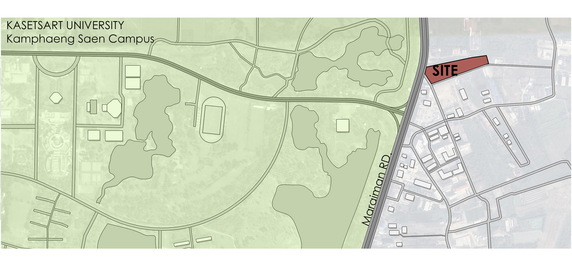 “Space In Between Nerd And Activist” เนื่องจำกที่ตั้งโครงการอยู่ตรงข้ามมหาวิทยาลัยเกษตรศาสตร์ วิทยาเขตกำแพงแสน แนวคิดของโครงการจึงตั้งประเด็นไปที่กำรออกแบบพื้นที่ที่ตอบโจทย์กำรใช้ชีวิตของนักศึกษาทั้งสองประเภท คือ เด็กเรียน (Nerd) และ เด็กเล่น (Activist) ทั้งพื้นที่ที่ใช้ร่วมกันได้ และพื้นที่ที่ตอบสนองความหลากหลายของความต้องการตามแต่ลักษณะของนักศึกษา