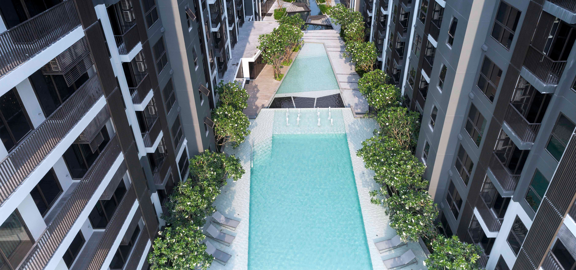 The Politan Breeze is located along the river of life, Chao Phraya River. In such a prime waterfront location, the design team proposed to integrate the soul of traditional Thai riverfront settlement with contemporary living lifestyle of a low-rise residential condominium. In the new nature-friendly living lifestyle, the green space enhances residents’ quality of life with the natural environment along the river amidst modern facilities in resort quality atmosphere.