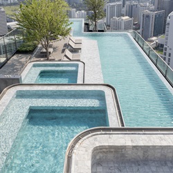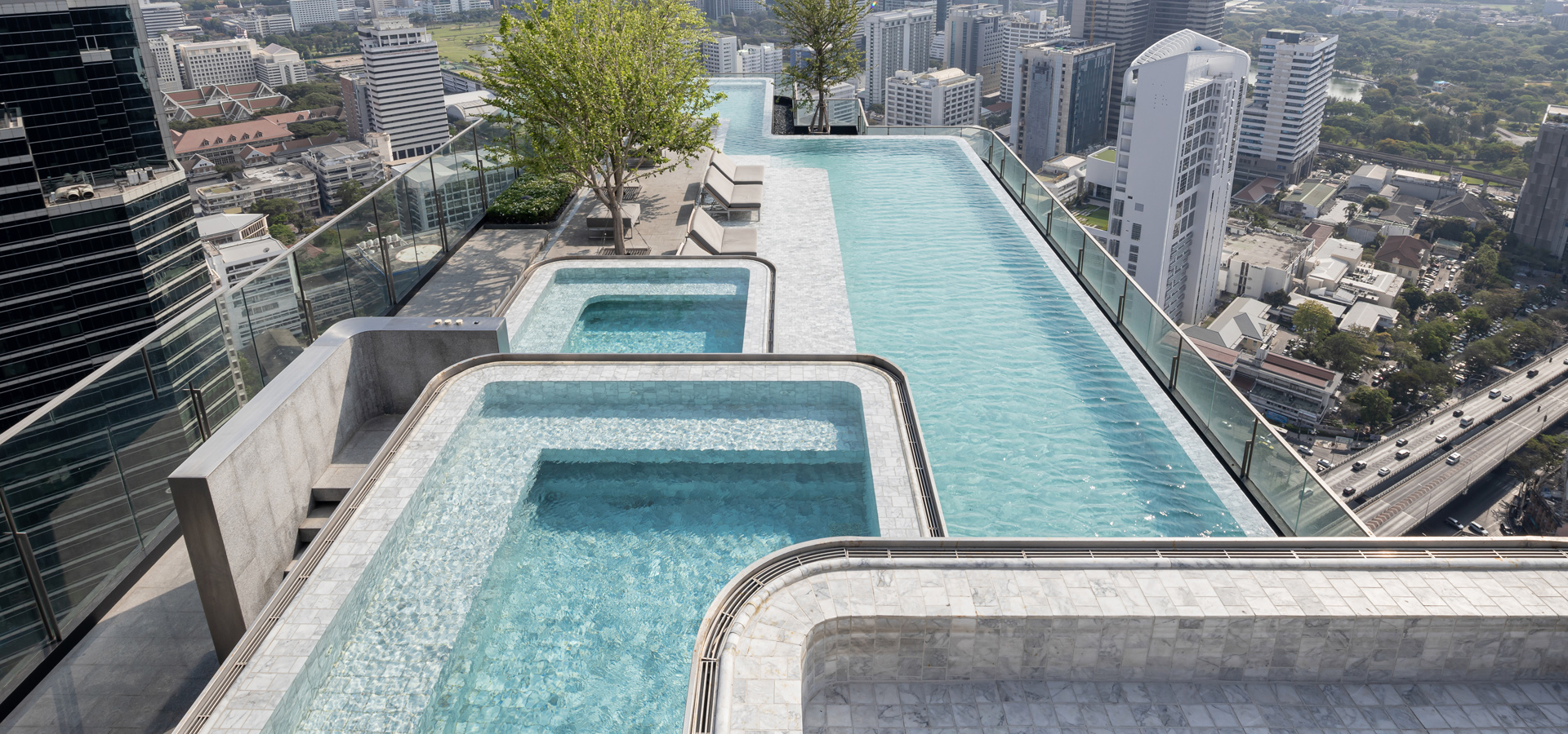 The swimming pool is located on top of the building, taking the iconic view on one side we can’t decide whether to put the lap pool or Jacuzzi on the prime pool edge. We later came up with the idea of multi-level pool. So, weather you are the gold medal swimmer or pool potato who loves Jacuzzi you can enjoy the iconic view without something blocking.
