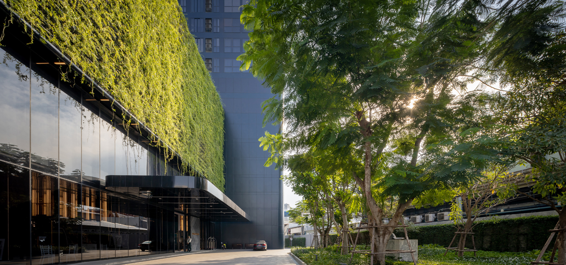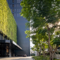 Ashton Chula-Silom is located on Rama 4 road in the very same area with Chulalongkorn University. Located not far from the nearest MRT Samyan station and BTS Saladaeng station we try to convince the residence to use public transport by designing pedestrian entry court to be as pleasant as possible. Even having the nice public pedestrian walkway in Bangkok is still beyond hope but why don’t we start with ourselves.