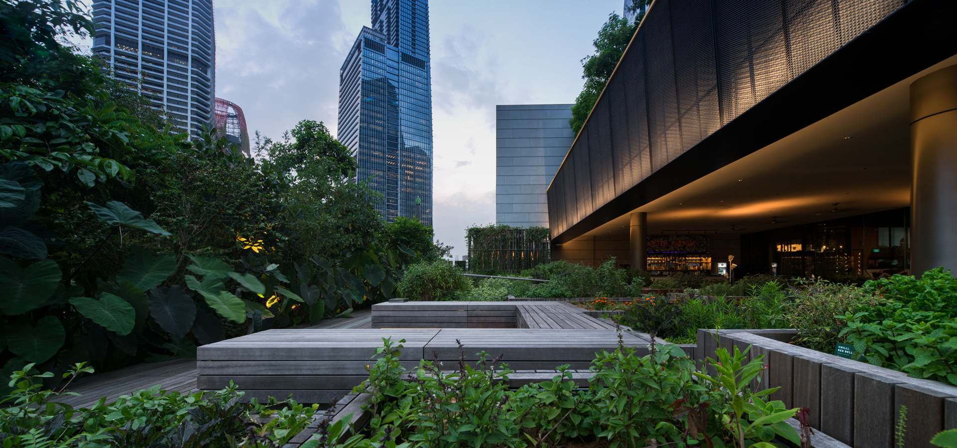 พื้นที่ภายนอกอาคารของอาคารชั้น 5 เป็น public area ที่เชื่อมต่อกับส่วนร้านอาหารและ Gym ให้สามารถออกมาใช้งานภายนอกได้อย่างเต็มประสิทธิภาพ โดยส่วนงาน soft scape ประกอบไปด้วยพืชผักผลไม้ทานได้ทั้งหมด ออกแบบเป็นแปลงย่อยๆ เพื่อสามารถเข้าถึงได้สะดวกในการใช้งานและดูแลรักษา ออกแบบร่วมกันกับทีม Edible Garden ของทางสิงคโปร์ เพื่อให้มั่นใจว่าพืชพรรณที่เลือกใช้สามารถดูแลรักษาได้ง่าย และให้ผลเร็วเหมาะกับสภาพอากาศของประเทศ ทำให้มีความอุดมสมบูรณ์ มีการจัดเตรียมพื้นที่ group seating ภายนอก ให้ออกมาใช้งานได้ทั้งผู้สัญจรผ่านไปมา หรือออกมาพักผ่อนหลังการออกกำลังกายได้ ทั้งยังสร้างกิจกรรม interactive สำหรับสาธารณะให้เข้ามาร่วมดูแล ปลูก หรือนำกลับไปทานได้อย่างอิสระ