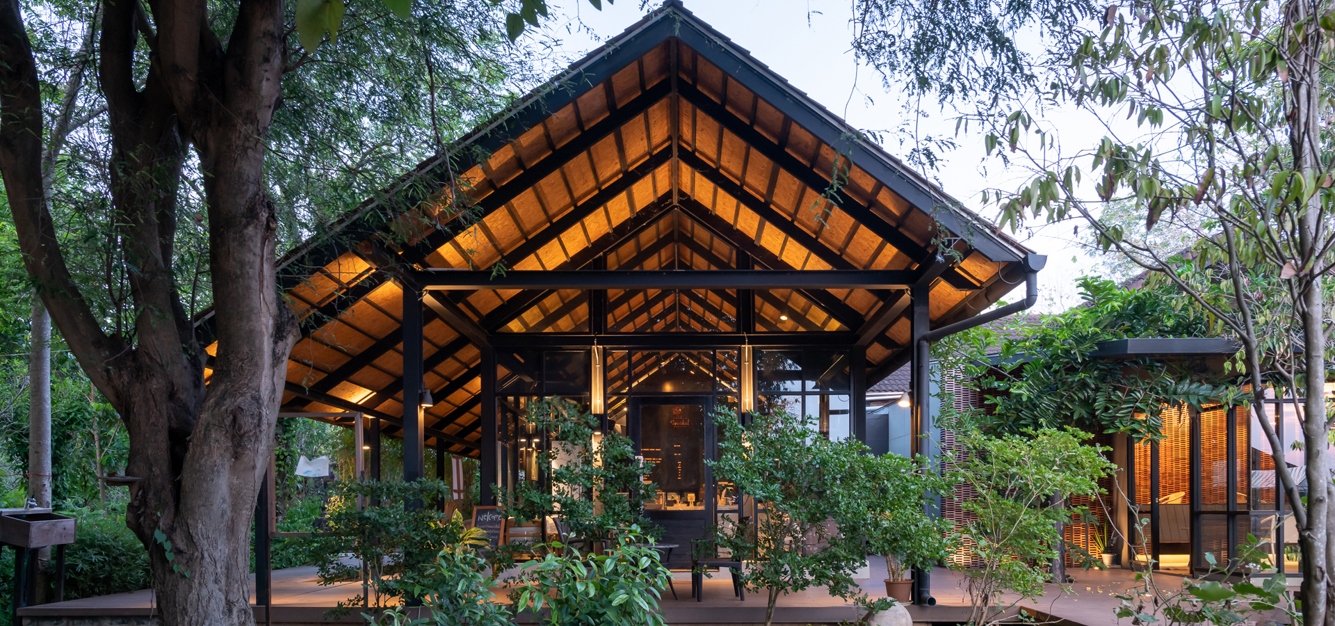 ปรับเปลี่ยนพื้นที่บ้านสวนเดิมที่ไม่ได้มีการใช้งาน ซึ่งถูกทิ้งร้างเป็นโรงเลื่อยไม้ ให้กลายเป็นพื้นที่แห่งชีวิต เชื่อมโยงน้ำ-ป่า-คนอีกครั้ง เป็นเสมือนลานบ้าน ให้คนได้ออกมามีปฏิสัมพันธ์ แลกเปลี่ยนเรียนรู้ซึ่งกันและกัน อีกทั้งยังส่งต่อแนวความคิดการทำเกษตรกรรมและความเชื่อมโยงกับวิถีชีวิตริมแม่น้ำแม่กลองของคนไทยในอดีต พัฒนาให้กลายเป็นพื้นที่สำหรับร้านกาแฟภายในสวนวนเกษตร ซึ่งในโครงการประกอบไปด้วย พื้นที่การทำกิจกรรมปฏิบัติการ(workshop)จากผลิตภัณฑ์ทางเกษตรอินทรีย์ พื้นที่พักผ่อน ห้องเรียนทางธรรมชาติให้ความรู้เรื่องวนเกษตรร่องสวนของไทย โดยไม่ใช้สารเคมี จนทำให้พื้นที่แห่งนี้เป็นพื้นที่สำหรับทุกคนได้ในที่สุด โดยมีสามหัวใจสำคัญ คือเรื่องสุขภาพ ธรรมชาติ และการพึ่งพาตนเอง