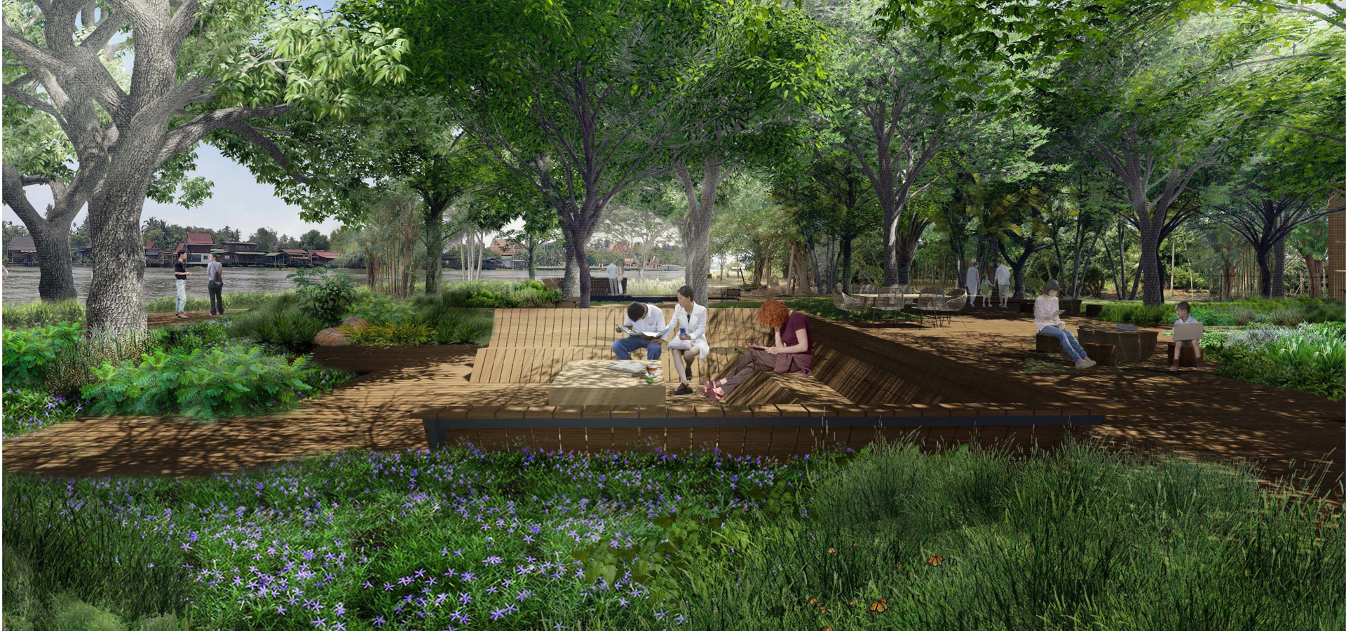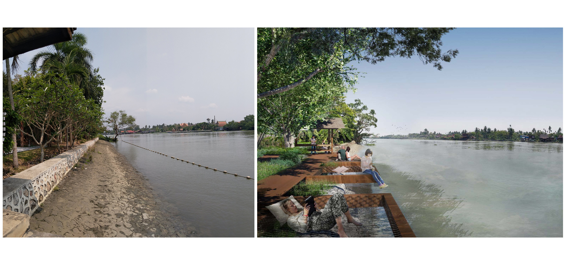 2.Turn on view of the Mekong River for people to see and appreciate. Design to allow people to be closer to the water. By realizing that the water source used to be in front of people's houses by designing the user experience of the waterfront area in each area to be different.