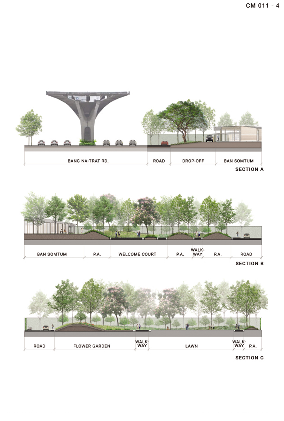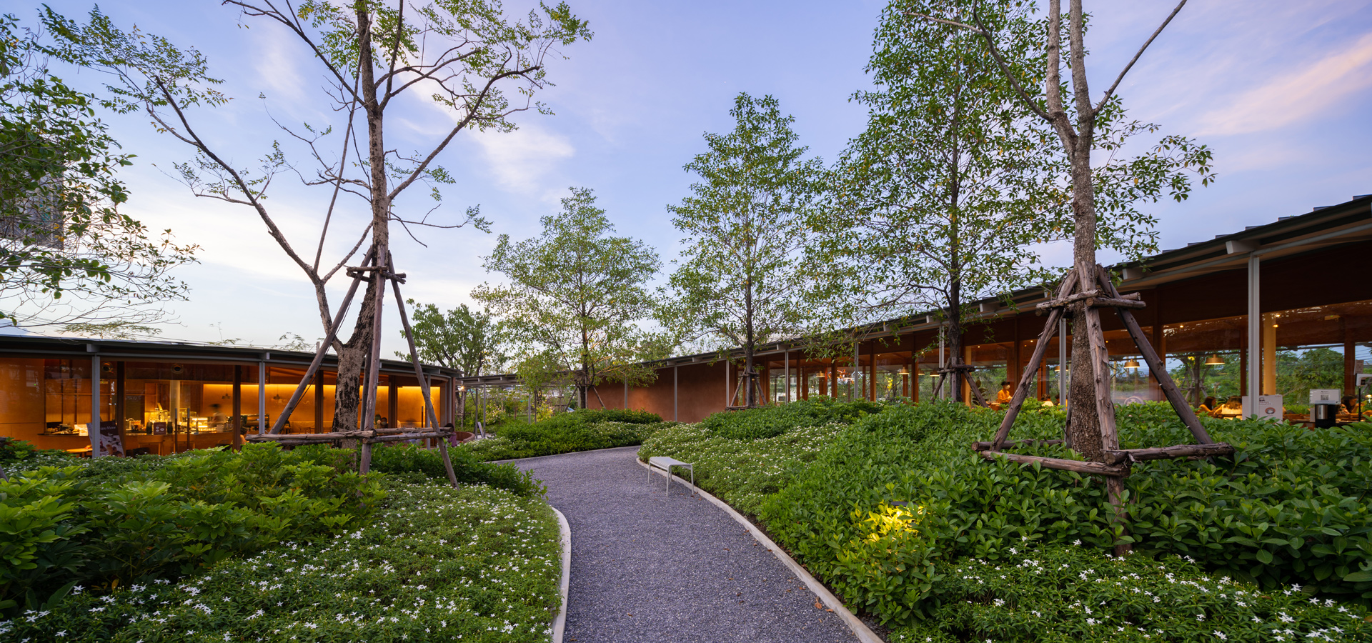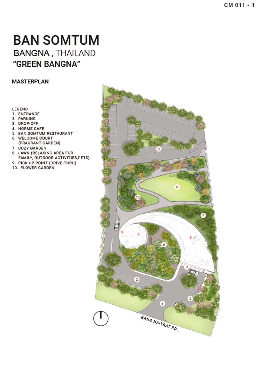 Baan Somtum Bangna is a restaurant project that wants to use the opportunity to develop green areas that not only create good atmosphere for the project but also create green space for the neighbourhood as well.
